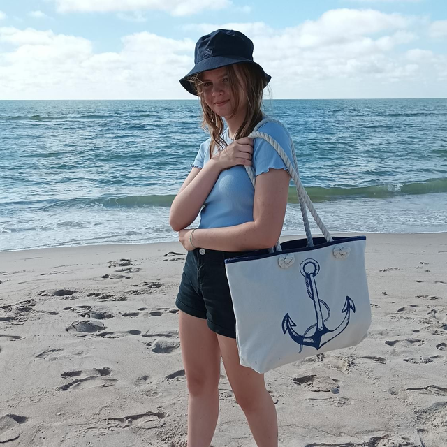 Shoppingtasche von Sea Club. Farbe natur/blau, 100% Baumwolle, 40/50x12x34cm. Mit Reißverschluss.